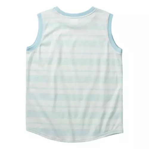 This girls’ sleeveless t-shirt has a vintage vibe in striped cotton jersey with curved hems. A Carhartt script logo decorates the front.