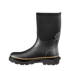Carhartt developed Mudrunner Rubber Boots with Insite Technology to dramatically change the comfort and performance of the Vulcanized boot category. In rain, sleet, snow, dirt, mud or sludge these Carhartt Rubber boots will help you power through. The outsole and foot part to above the ankle are Vulcanized utilizing formulated rubber and the shaft to above the calf is 5mm Neoprene Rubber to keep you warm and dry. The heel incorporates a kick stop feature to aid in pulling the boots off at the end of the day. Every style in the collection incorporates the Carhartt Insite Technology Footbed that is engineered to create maximum arch support to reduce foot fatigue during long days on the job. FastDry Technology linings wick away sweat. The outsole bottom features multiple enhancements for traction, liquid disbursement, anti-skid and anti-clog lugs.