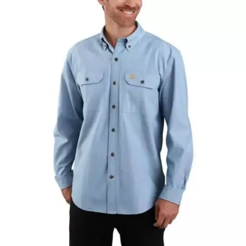 Classic style and a familiar fit give this mens Carhartt shirt a doitall feel The full cotton build is garmentwashed so its soft to the touch and the original fit gives you plenty of room to move 45ounce 100 cotton ringspun chambray Original fit Garmentwashed for a soft finish and reduced shrinkage Buttondown collar and front Pleated shoulders provide room to move Chest flap pockets with button closure Imported