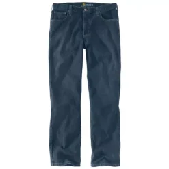 The Carhartt Rugged Flex Relaxed Straight Men’s Jeans are tough enough to withstand 14-hour workdays. These men’s Carhartt jeans feature Rugged Flex® technology which allows for stretch making it easier to move, while the durable, thick fabric keeps your legs protected. These men’s work jeans have a straight leg that fits over your work boots, and the relaxed fit through the seat and thigh offers a more comfortable feel on the job. Make sure you’re ready for the workday ahead with the Carhartt Rugged Flex Relaxed Straight Men’s Jeans.