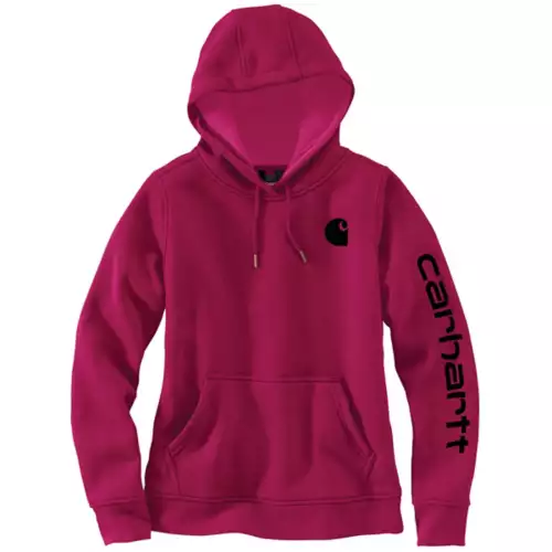 The Carhartt Women’s Clarksburg Graphic Sleeve Hoodie will keep you cozy and warm with heavy-weight fleece material. The Carhartt Women’s Clarksburg Hoodie features a relaxed fit that allows for easy layering so you can dress for the weather, while the durable material protects against wind and cold. Finally, a kangaroo pocket is the perfect place to warm your hands or keep small things for easy storage. Whether you’re working in the barn or cozying up on the couch, choose the Carhartt Women’s Clarksburg Graphic Sleeve Hoodie.